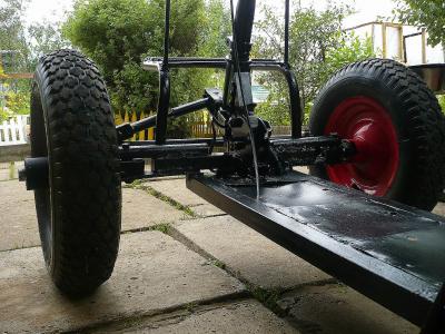 В общем дачный вариант ;-). Наконец-то сделал!  B-)Правда потом буду еще дорабатывать, сделаю подвеску(не исключено, что она будет независимой), так же, в дальнейшем планирую целиком переделать его под квадроцикл:) а для этого осталось найти где-нибудь заднюю ось и колеса ;-D