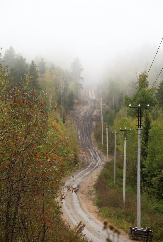 "сосед" съездил осень посмотреть и зафотал тот злосчастный подъем снизу. тот самый первый, где еще DD пожег. выложу фотку, чтоб равнинным жителям было понятно какие условия требуются. подъем начинается в середине фото, столбы и деревья дают представление о крутизне. перепад высот там метров 300 с чем-то. говорит по этой погоде почти никто осилить не смог, в том числе крузак, только нива с большим трудом взяла.