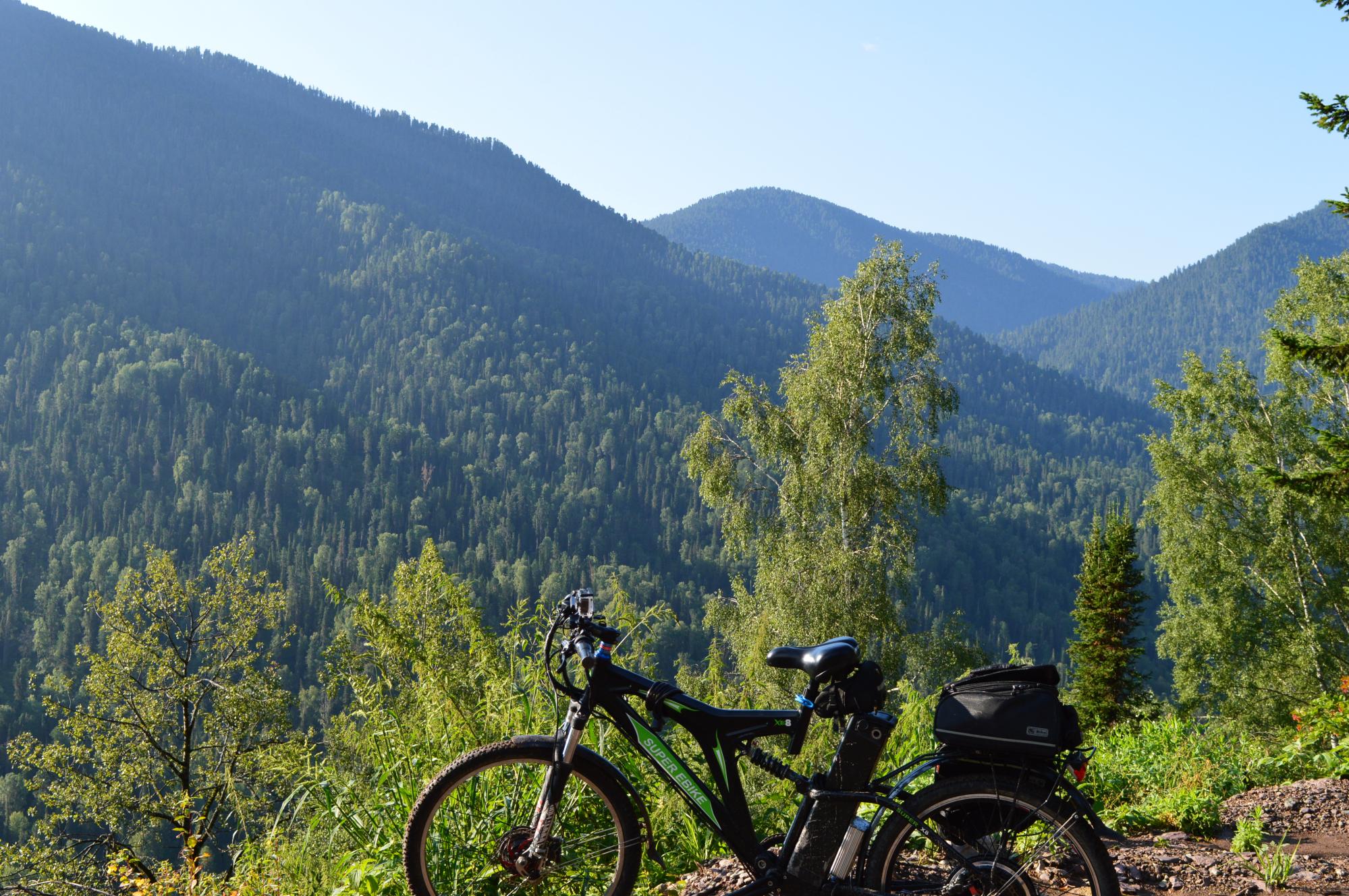 дорога убитая ручьями и внедорожниками и крутизна почти всегда большая, а местами почти запредельная. булдыганы, гравий, скальник - всего хватает. переключил бафанг в 3 пас (60% мощи, 100% лимит скорости), поставил 34 звезду сзади (42 впереди), курок зажал ладонью и пилил. когда скорость падала ниже 15-20 врубал передний qq100h и докручивал педалями. почему так: восхождение долгое, не хотел перегреть мид максимальными токами ПОСТОЯННО и не хотел быстро высадить батарейку такими токами. перегрев распределял между мидом и эпизодически передним мотором. задний у меня на финике, крутит быстро, а тяги нету, провода перекидывал по одной шпаргалке - не помогло, поэтому не пользуюсь в тяжолых условиях и вобще сниму, лишний он. о хорошем: заехал, никто не перегрелся и не сдох, ну только я щас понимаю, что хорошо устал :)