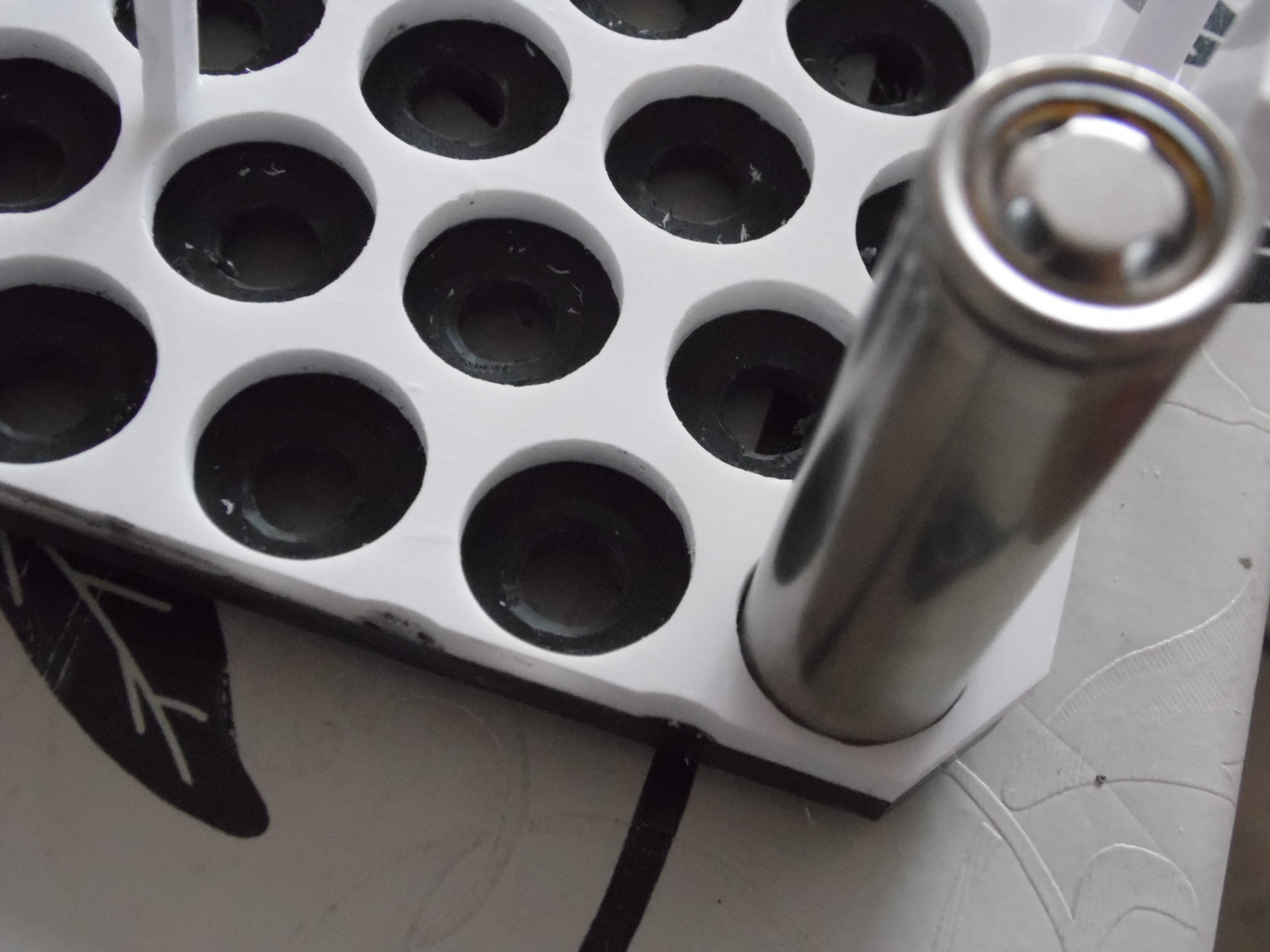 листы пластика - полистирол 5мм. сверлил на сверлильном станке перьевым сверлом 18мм. склеивал упорчики из того же полистирола, в качестве клея использовал хлороформ..  батарея в собранном виде очень прочная, никаких люфтов...