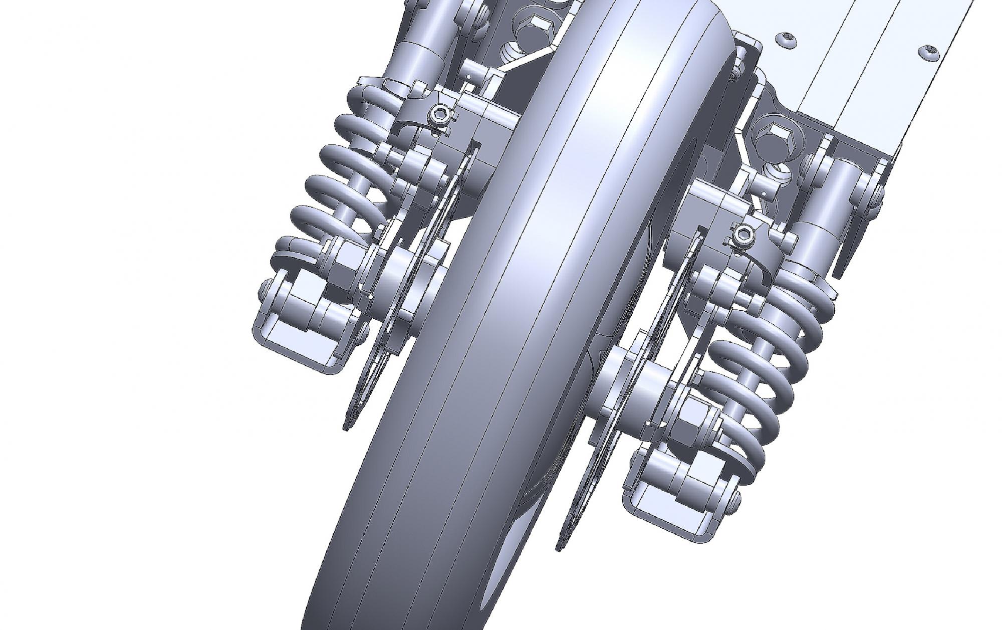 Я бы вилку более вертикально поставил, общая длина самоката бы уменьшилась и смотрелось бы гармоничнее что-ли. Да и  амортизаторы (имею ввиду штоки подвижные, не знаю как они точно называются) под таким приличным углом к вертикали надламывать не начнет?