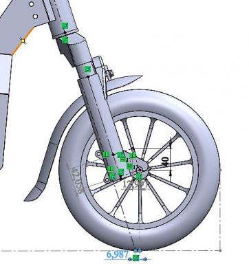 Построив по вашему боковому виду ось поворота руля и перпендикуляр к горизонту от оси колеса, показалось, что трейл отрицательный околонулевой. так специально задумывалось? если развернуть вилку то трейл уже будет около 75-80мм.