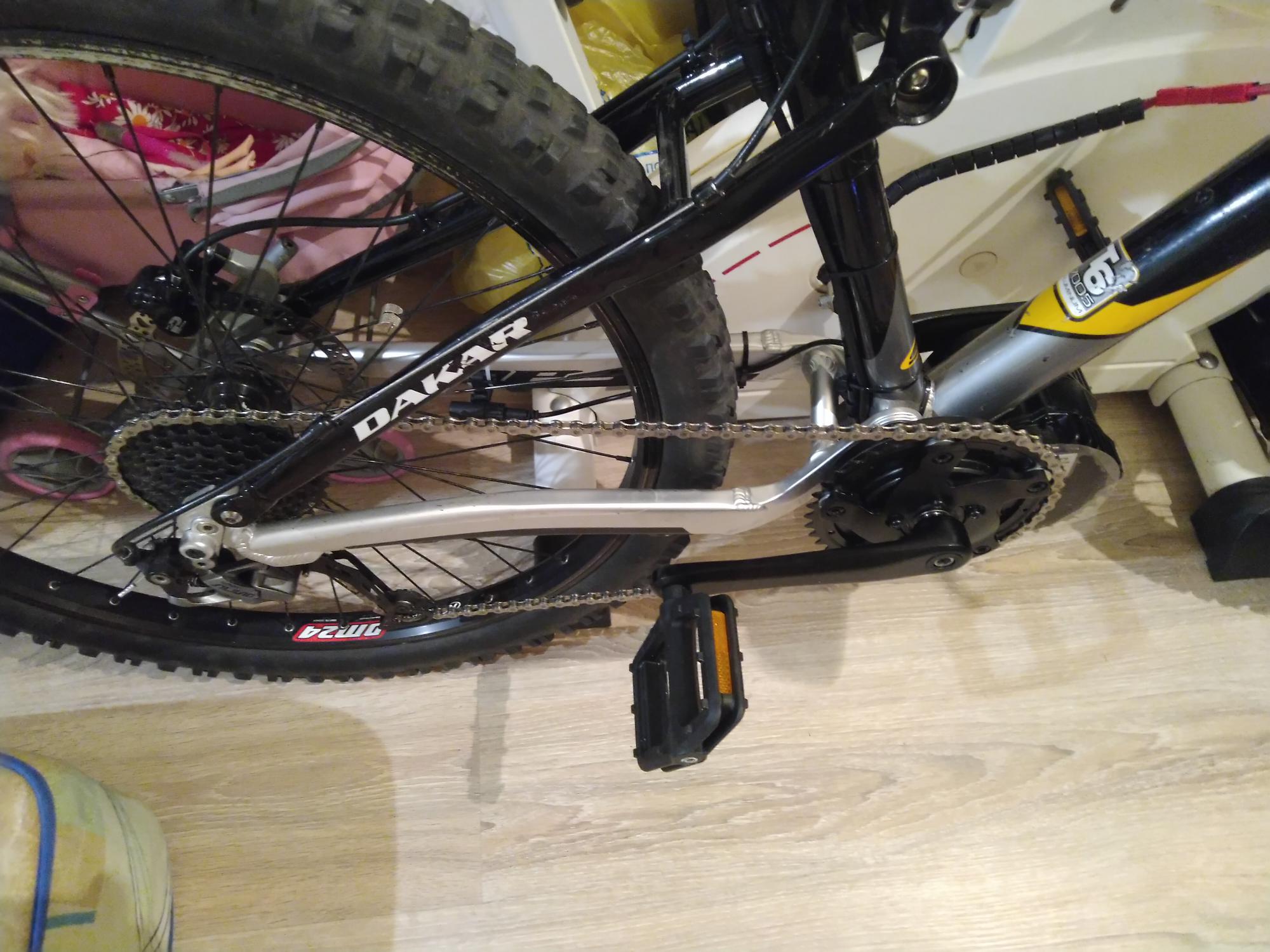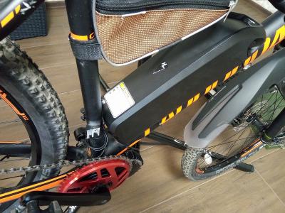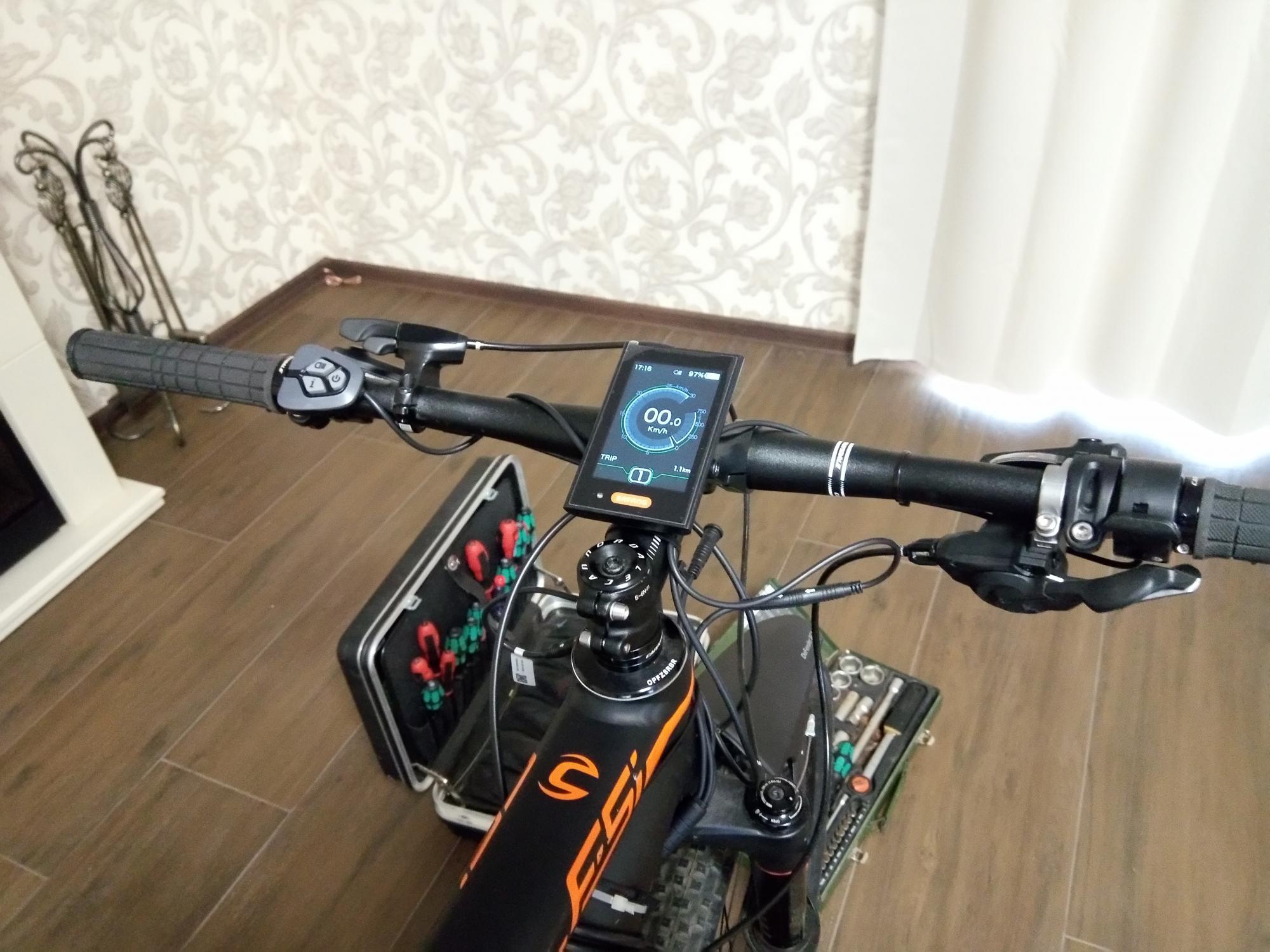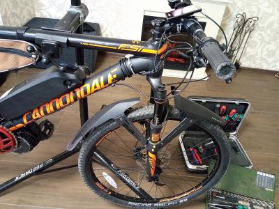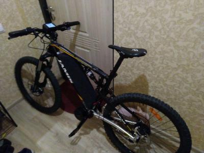 Ну все наконец-то закончил собирать велосипед, осталось закрепить батарею но вчера уже затестил  замотав скотчем.  Конфиг следующий - донор  Jamis Dakar XC sport 26, ведущая звезда 39*, ведомая  - не помню какая макс звезда, но всего 9  скоростей.  Батарея  - LiNMC 14S3P 21aH. Велик получился достаточно легкий, на 5 этаж затаскиваю без проблем.