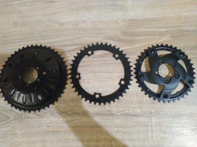 Пробовал ставить 46, 39, 42 зуба. Остановился на 44. Просто кассету поставил 11-50, две, 11 и 13, заблокировал, на них цепь перескакивает. По плоскачу 55 км/ч уверенно идёт. На заднем полтиннике тяга отличная и при таком соотношении звёзд, большее количество зубов в зацеплении с цепью, что продлевает их жизнь. Мой вывод: не переднюю уменьшать, а задние увеличивать.