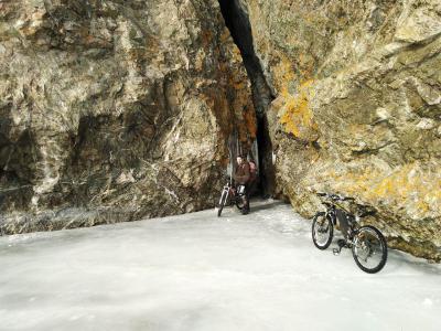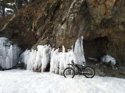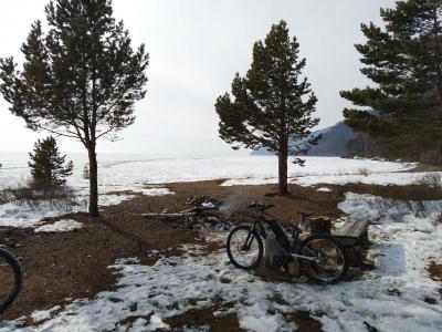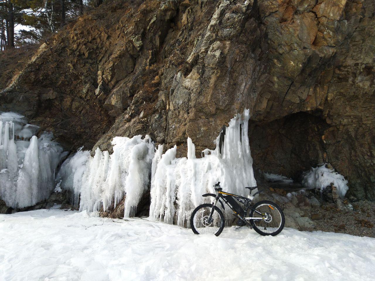 Вчера катанули вдоль Байкала, много пересеченной холмистой местности  + одна крутая гора метров 300 на которую пришлось помогать ногами иначе буксовал, и около 10км по льду. Общий пробег 32км, сожрало порядка 17ач из 23, миддрайв конечно шикарная тема для подобных покатушек..   :dance: