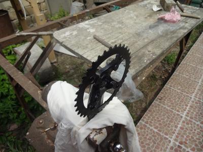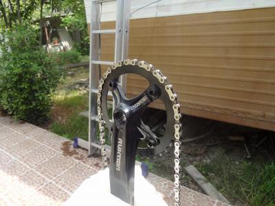 Родная 46т звезда в УЖАСном состоянии. Какие-то зубы погнуло, какие-то несильно сточило - но это пол беды... Эта сволочная звезда пилила мне раму (см. фото под сполером).