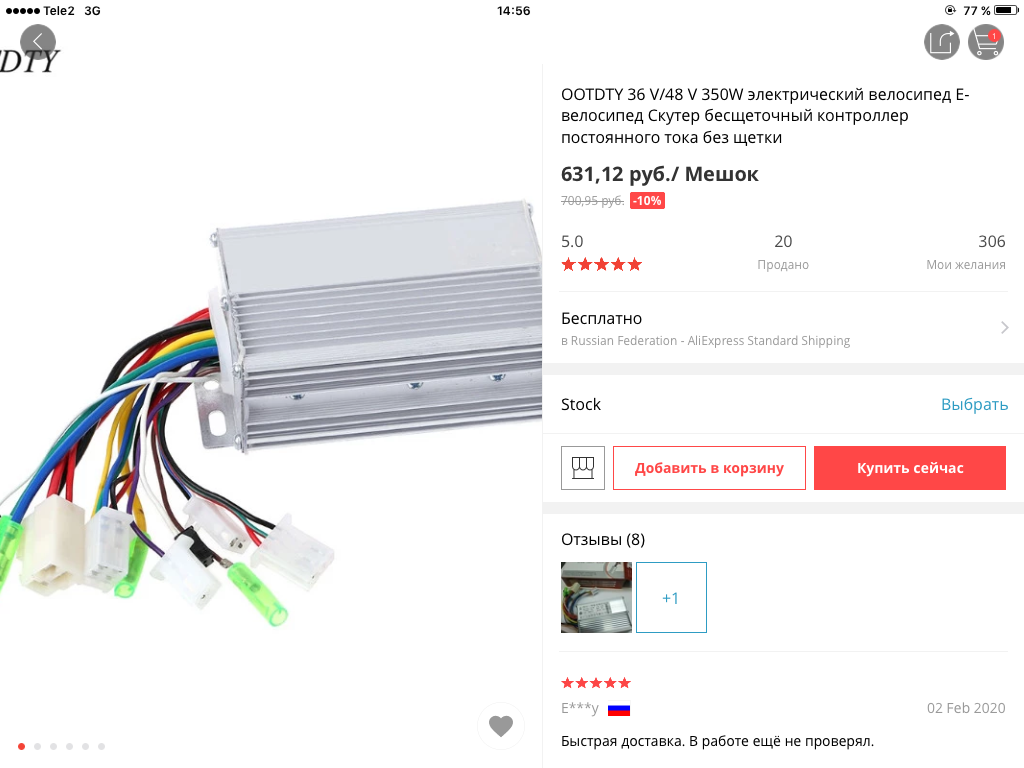 Цитата: Invar от 06 Фев. 2020 в 16:03У меня с эльтрековским колесом состыковались два самых дешёвых контроллера.