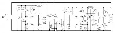 Добрый вечер всем форумчанам, подскажите где в схеме и как нужно поставить переключатель чтобы был режим с модуляцией и без. Моргалку сделал по схеме ниже