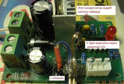 На Выход с моргалки (3 рин) поставил резистор 12к и вывел на 4 пин 555 ШИМ моторчиков.