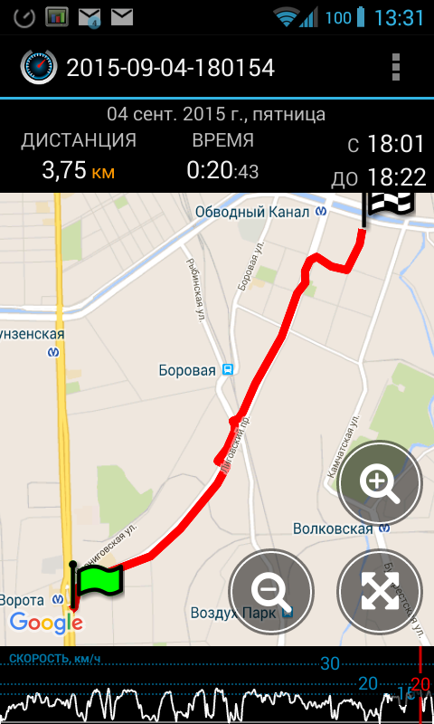 Изменил настройки записи в геолокаторе на 1сек и минимальное расстояние 1метр. Во время движения регулярно делал остановки на 2 мин. В статистике на графике скорости скорость максимум проседала на 4.5км/ч. Половина стоянак/остановок вообще на стабильных средних 18-20км/ч. При длинном тапе на каре по  треку только на некоторых остановках 0км/ч. Сделал вывод, что на данный момент более точный софт или родной-фирменный, получающий инфу по блютузу или проф gps-трекеры. Остальные спидометры и gps-навигаторы для смартфонов показывают полную чушь по максимальной скорости, занижая ее от 2км/ч и более (с треком у них все ок).