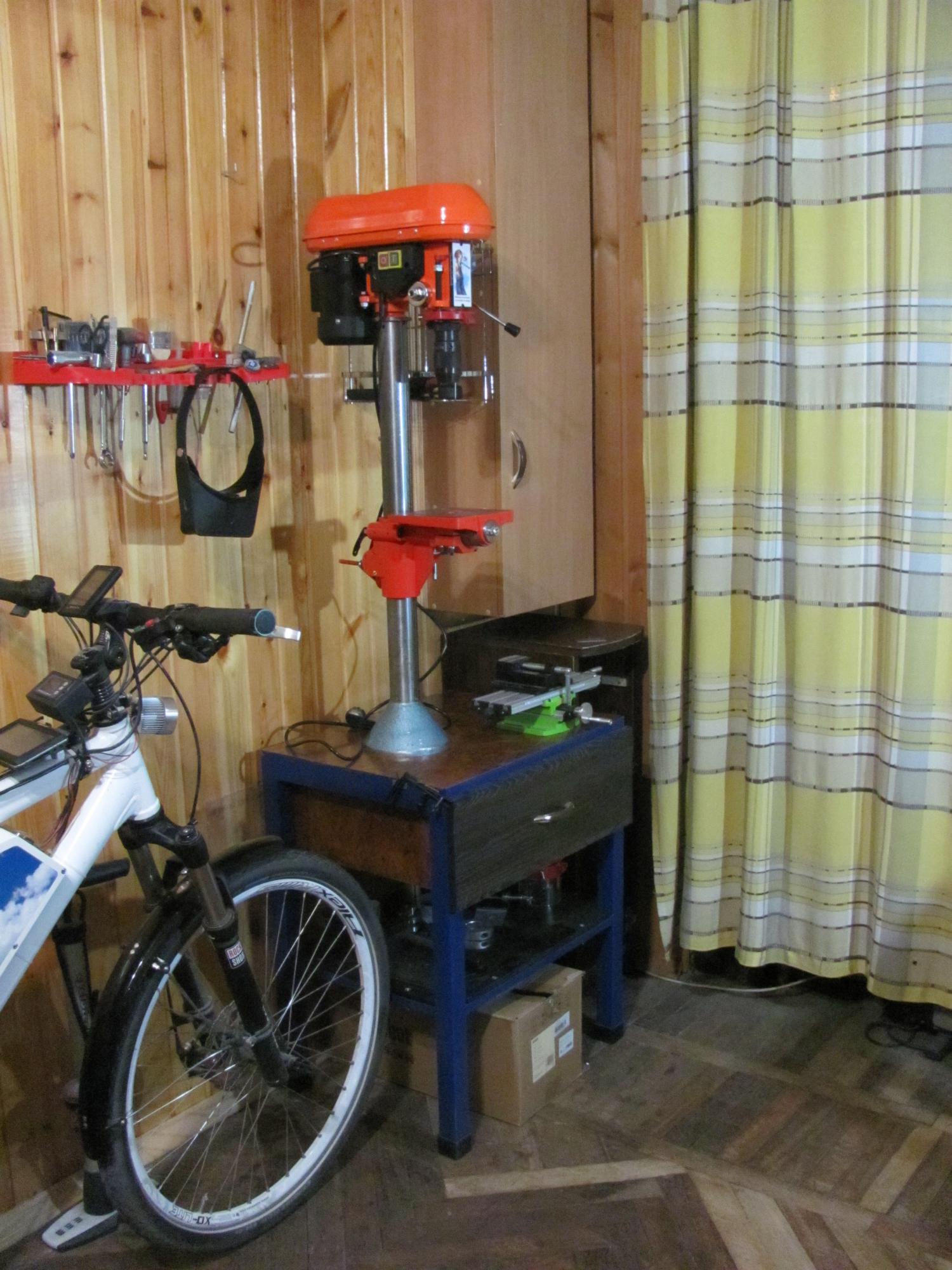 Курю сегодня у окошка, смотрю на помойку стол со стойкой волокут. Я эту стойку отчекрыжил, сзади заделал вагонкой и привинтил к верстаку. Халява, а хотел сам делать.      :dance: