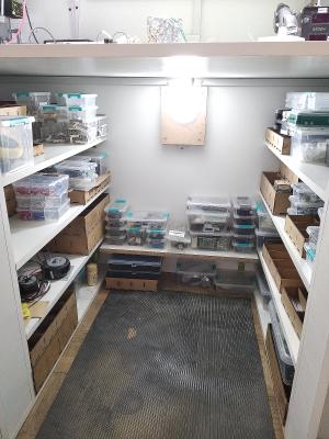 Ну вот как то так выглядят кассы, они дешёвые, у нас примерно 3-4 доллара штука, съёмные перегородки. В них например паяльный скарб, или крепеж типа быстрого монтажа, или автомобильные лампочки светодиодные чтоб как заскучаешь или тоска одолеет, взять да и поменять штатные на диодные. В кассах удобно тем что сразу видно что где. Детали тоже в кассах только в пакетиках с застёжкой зиплок.