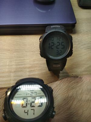 Часы чтоб знать когда пора есть а когда пора со двора. Подсветка, крупные светящиеся цифры, водо и пыленепроницаемость, дешевизна. Опционально будильник секундомер таймер.