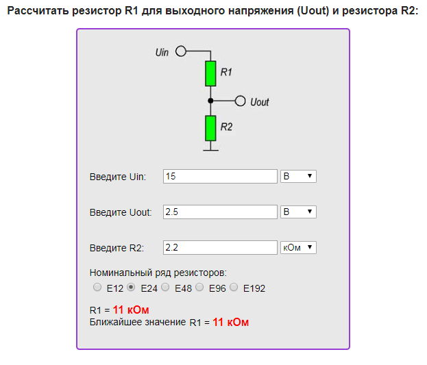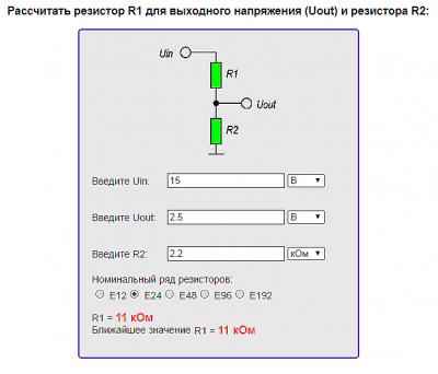 Отправные точки расчётов - напряжение опоры (2.5В) и требуемое выходное (14.8В).