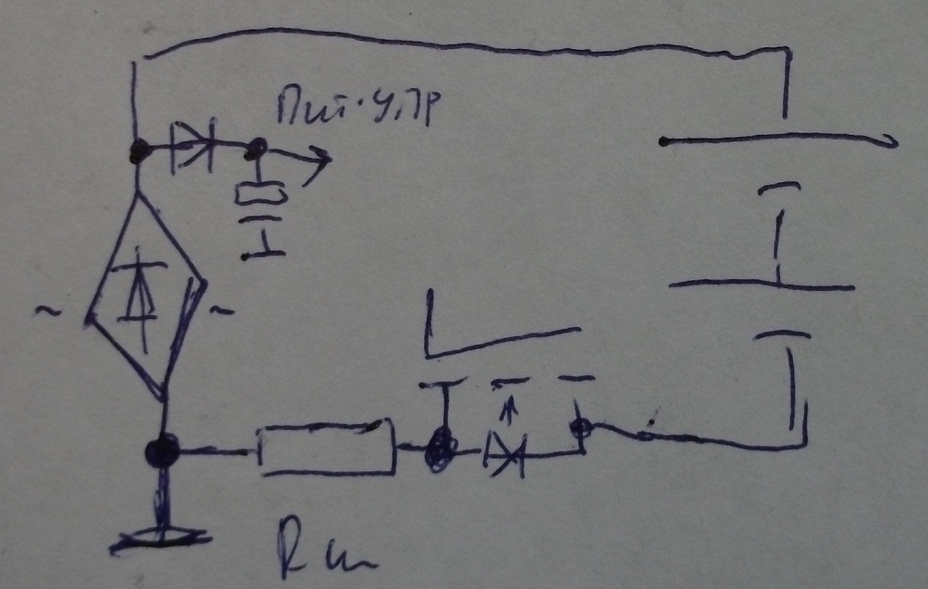 Возможный вариант силовой части моргалки или CC/CV ЗУ на базе трансформатора с диодами.