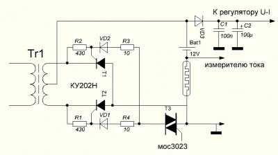 [user]WERAS[/user], на мой взгляд управление тиристорами в верхней схеме организовано не правильно, тиристоры управляются положительным потенциалом, а нижняя схема - управление ШИМ контроллером, будет зажигать светодиод оптопары при повышении заданных напряжения и тока.