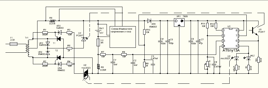 У меня есть зарядки не импульсные: на транзисторах,  на DC-DC преобразователях (понижающих и отдельно на повышающих), "умные" на диджитал (Kokam, iCharger для NiCd, NiMH, LiIo, LiPo, LiFe, Pb, заряд, разряд, цикл и проч.), одно- и четырех-амперные для  аккумуляторов 6 и 12 Вольт с встроенными импульсными блоками питания и др. Так, что, скорее всего, "чешутся руки и не от грязи, а от тараканов в голове", на сколько умных - не знаю. Импульсных зарядок нет, но зато есть много того, куда их можно подключить и попробовать. Помогите пожалуйста исправить ошибки в схеме и с подбором элементов, если не трудно.  Диджитал займусь после этой приставки - в наличии набор для ардуино,  нафаршированный разными приблудами, но тараканы боятся, что он отравлен ... и пока обходят стороной.