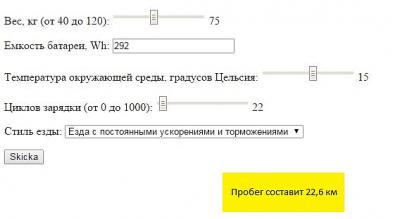 Замутил калькулятор пробега моноколес в зависимости от: