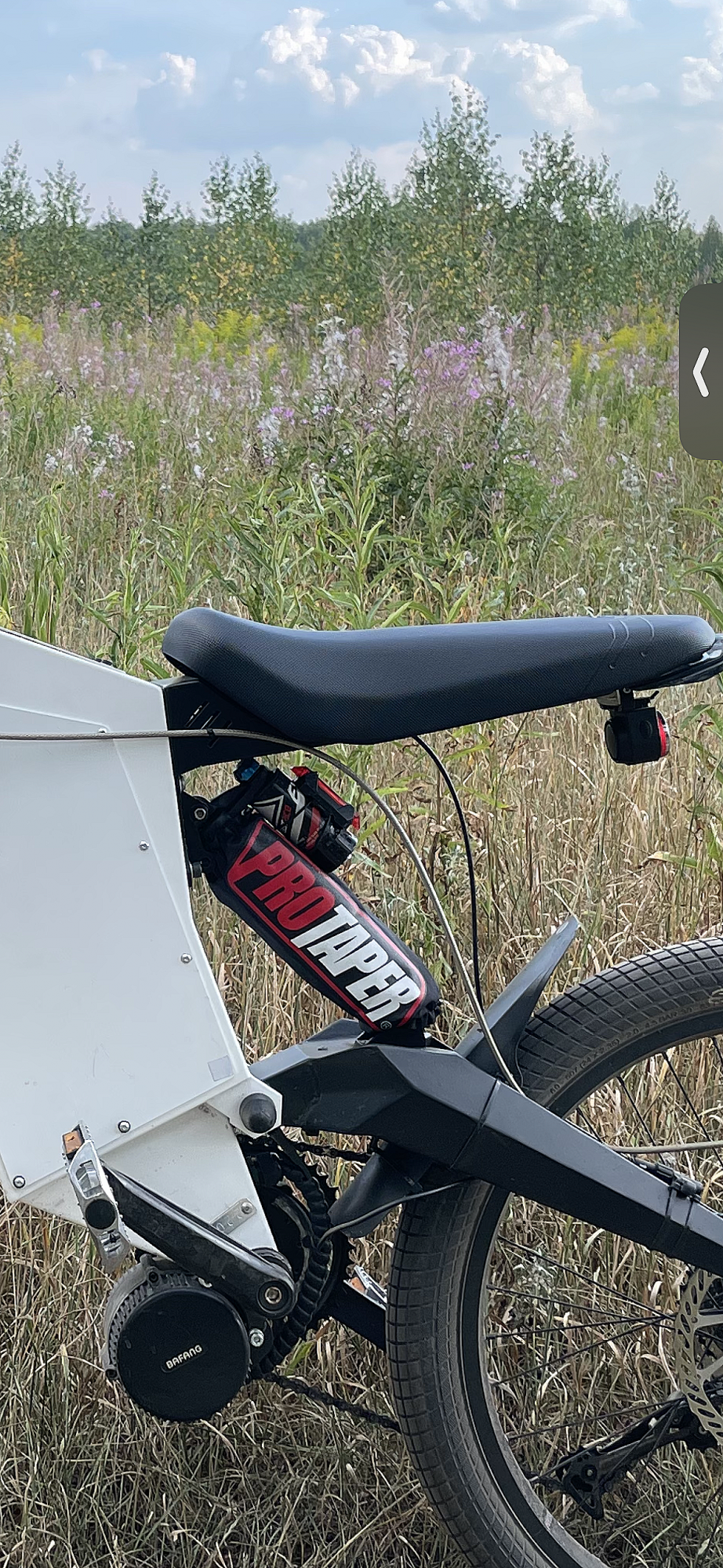 [user]dantist[/user], касательно мото-седла, интересен вариант именно в данном исполнении. Судя по фото, у вас именно такое решение? Подскажите еще, пожалуйста, что у вас за крыло стоит на маятнике, которое защищает аморт от грязюки?
