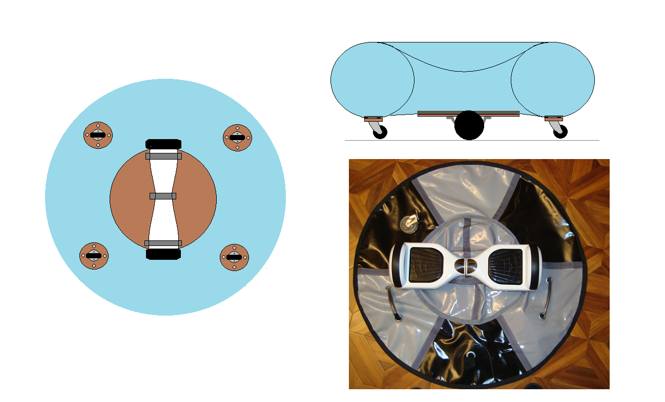 Поэтому будущий аппарат будет не просто маневренная электроватрушка на колесиках, а у нее сохранится от гироскутера способность к самобалансировке, и езда на двух ведущих колесах гироскутера. При этом боковые колесики будут большую часть времени находиться в воздухе, и будут вступать в работу лишь на виражах и крутых маневрах.