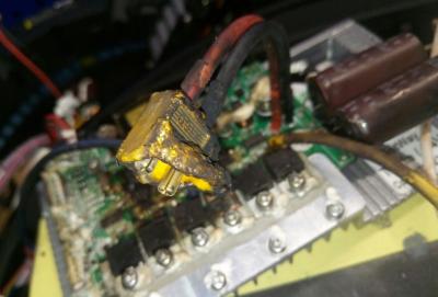 А вообще, так выгореть может только из-за явного замыкания, поэтому нужно искать причину в нем. Может отвалилось что внутри, может еще что-то подобное, типа плохая пайка ("облой" припоя) или как предположение по ссылке выше....  Хотя некачественная пайка это маловероятна, если его до этого не ремонтровали конечно))