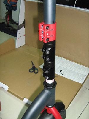 Но не получается, на самом деле, воспринять батарею в три кило на руле как адекватный вариант - уже очень высоко она будет висеть, не получится удобного руления. Единственный вариант - сделать быстрозаменяемую батарею, как на оксело предпологалось, в районе механизма складывания. И запасные в рюкзаке возить - вот это шикарная схема выходит, на самом деле.