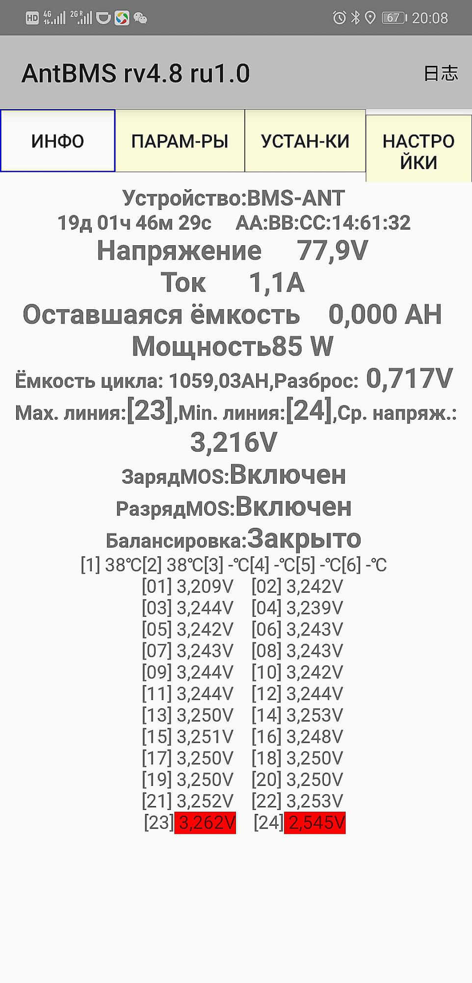 [user]satell[/user], у меня пока 1р батарея. Ежели я слышу что БМС пищит то лезу в приложение разбираться почему. Правда, не всегда этот писк слышно...