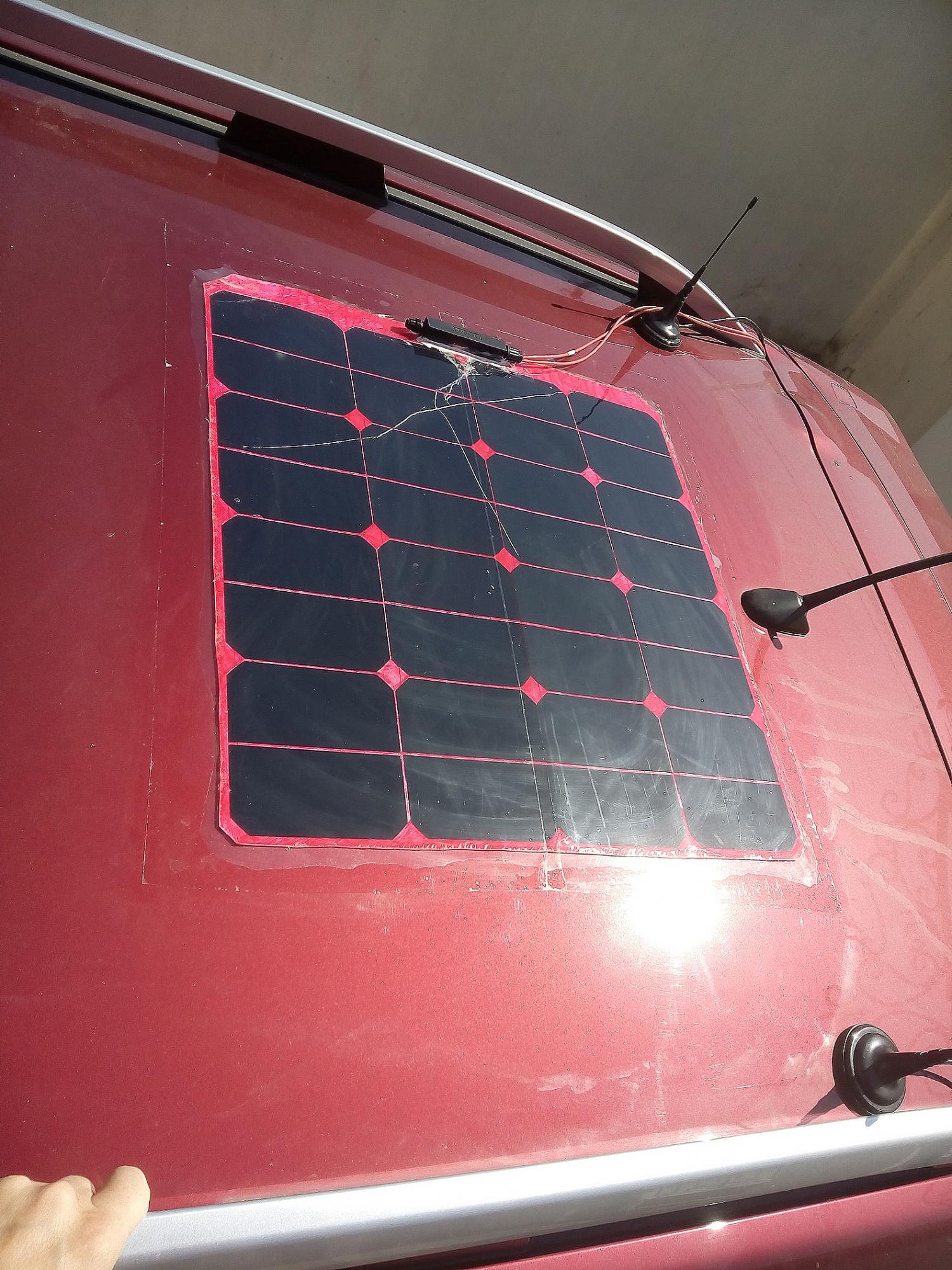 Покажу как я приколхозил небольшую полугибкую солнечную панель на свой авто.