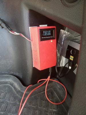 Воткнул туда же небольшую DC-DC понижайку для выходного напряжения 5В, чтобы отдельно подпитывать Wi-Fi роутер  :ah: