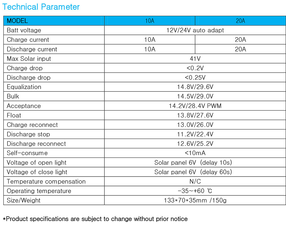 В темное время суток контроллер автоматически отключает солнечные панели для предотвращения