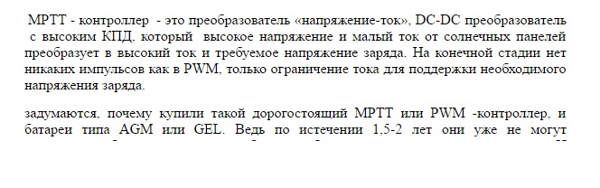 Но мы с ним переписываемся, и он получает от меня консультации, которые помогли ему открыть глаза на многие проблемы и позволили ему и его команде создать ПРАВИЛЬНЫЙ КОНТРОЛЛЕР для солнечной электростанции.