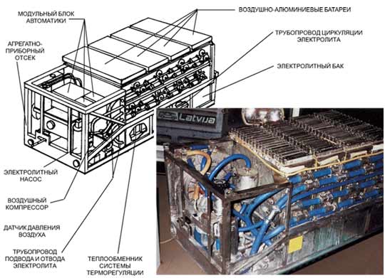 "...В последние годы Московским государственным авиационным институтом (техническим университе том) - МАИ совместно с научно-производственным комплексом источников тока "Альтернативная энергетика" - НПК ИТ "АльтЭН" создан целый функциональный ряд энергетических установок на основе воздушно-алюминиевых элементов. В том числе - экспериментальная установка 92ВА-240 для электромобиля. Ее энергоемкость и, как следствие, пробег электромобиля без подзарядки оказались в несколько раз выше, чем при использовании аккумуляторов - как традиционных (никель-кадмиевых), так и вновь разрабатываемых (серно-натриевых).