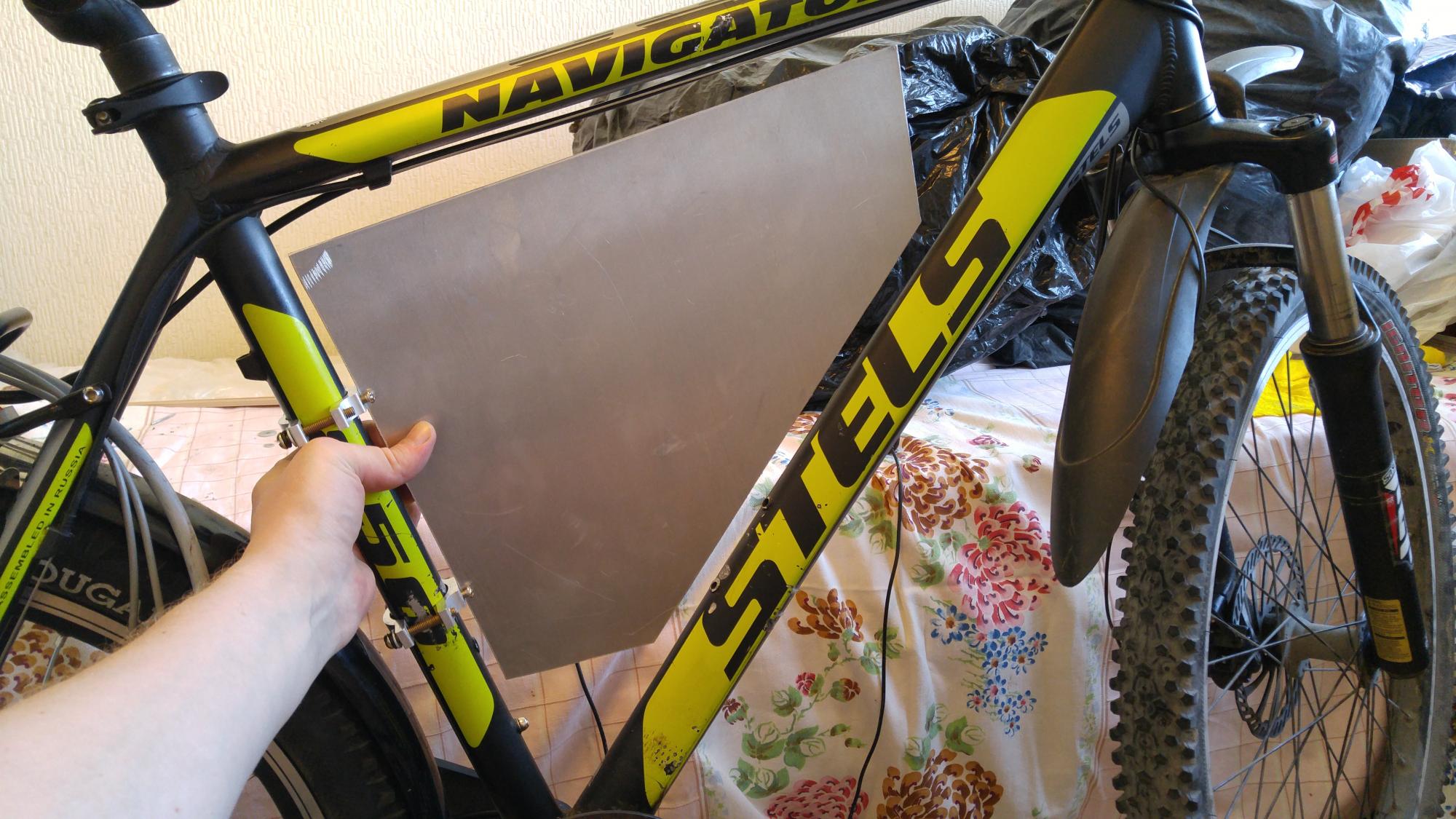 Почему сделал козырек, а не убрал все целиком в короб - большой короб уперся бы в седло, а за него очень удобно брать вел. Да и тяжелее была бы конструкция.