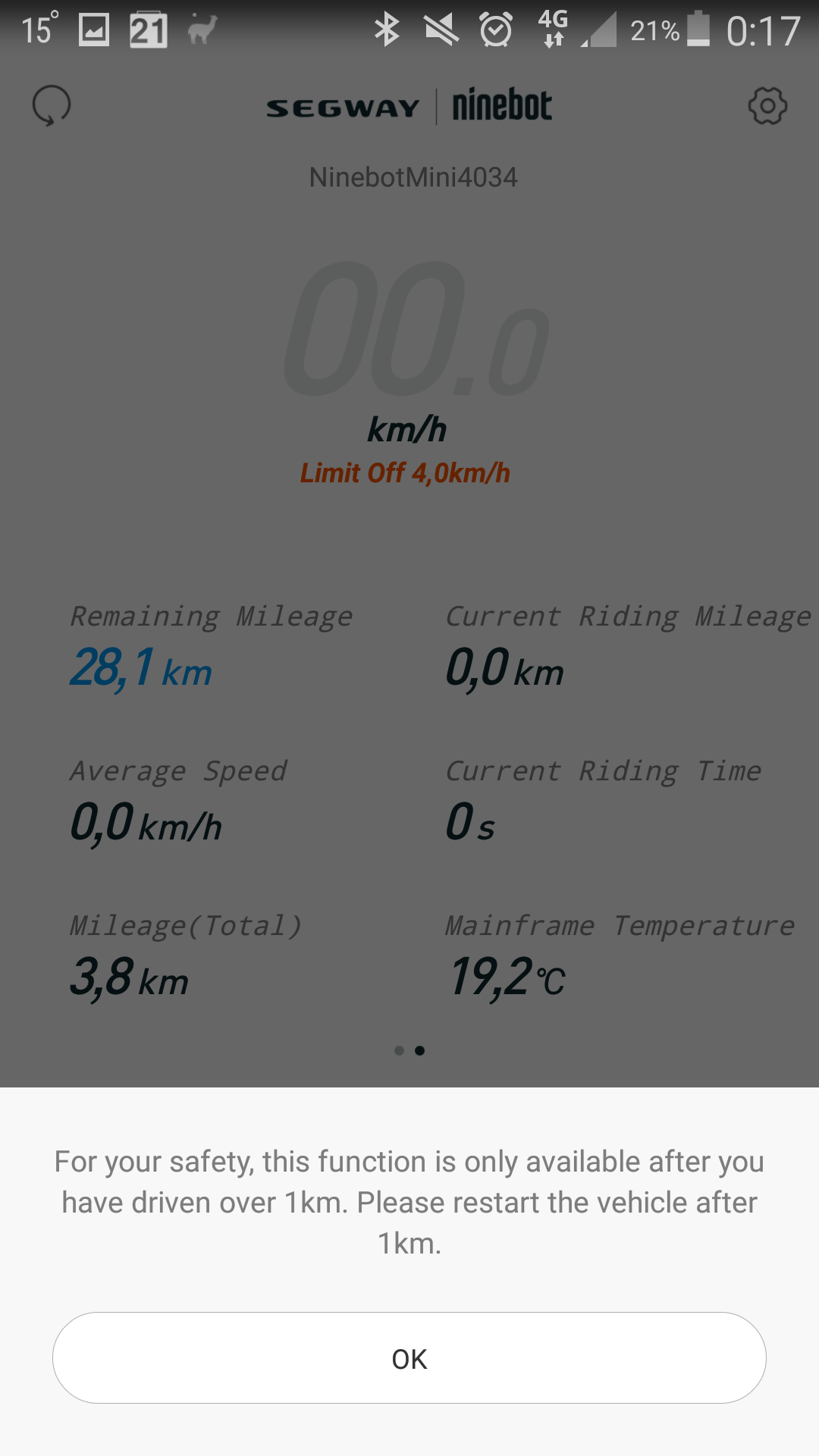 Не могу победить ограничение скорости на Xiaomi Ninebot Mini. Накатал уже почти 4 км, а ограничение в 4 км/ч не снимается