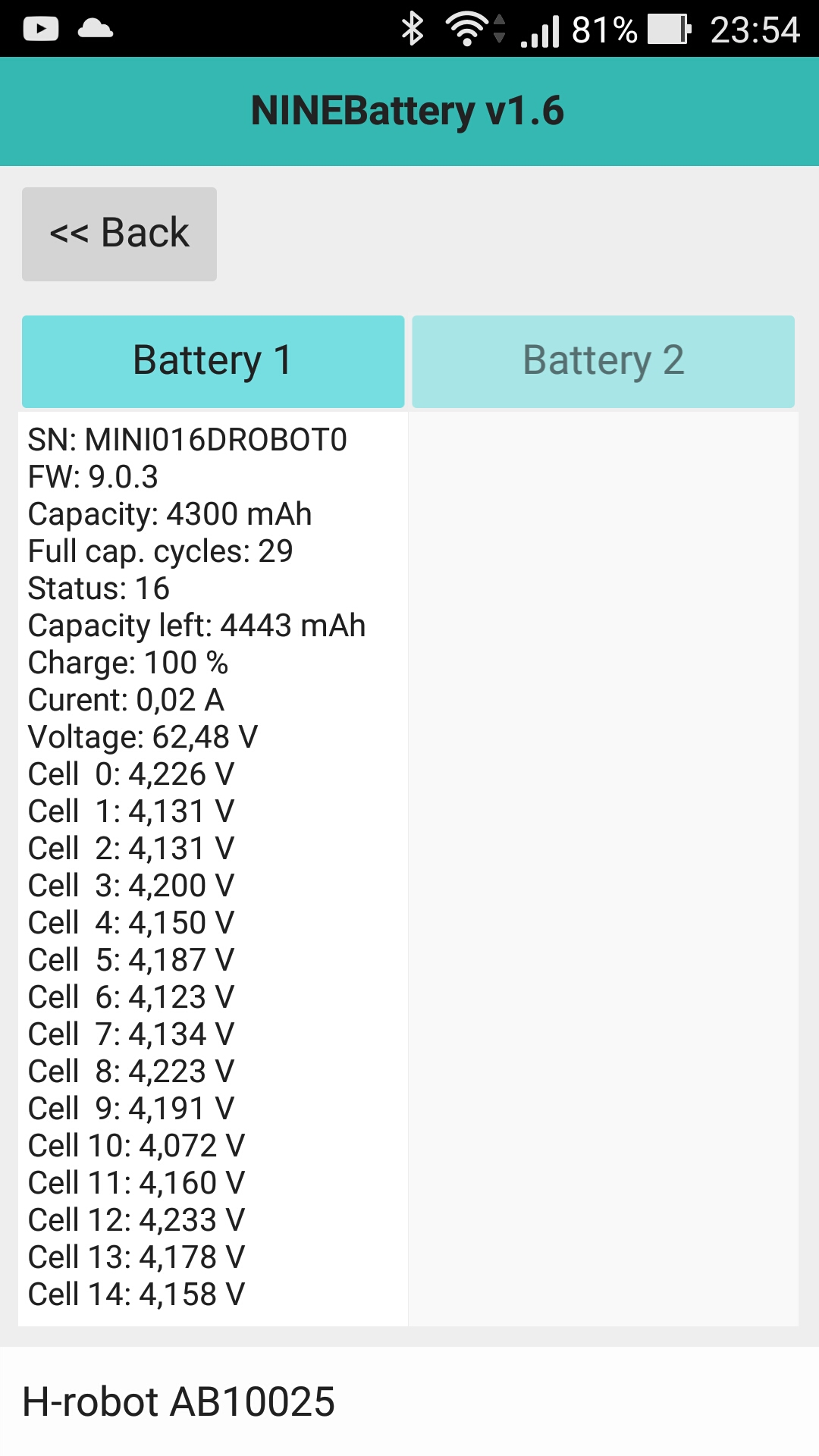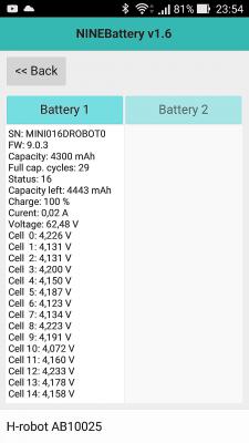Акб новая - я проехал по фиксированному маршруту. Прикольно, у копии отображается вся инфа, емкость, в реальном времени, температура, серийник.... Отличается только наклейками.