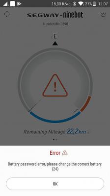 История вопроса. Была неоригинальная батарея, на которой сгорел процессор. Заменил, прошил прошивкой "Прошивка аккумуляторной батареи Ninebot Mini BMS v.1.1.3 (4300mA)" из соотв. темы ixbt. Батарея заработала. Но аппарат теперь пишет "Battery password error", пищит и мигает лампочками, хотя и ездит. В точности как на видео - https://www.youtube.com/watch?v=xl2t6R8pUYM