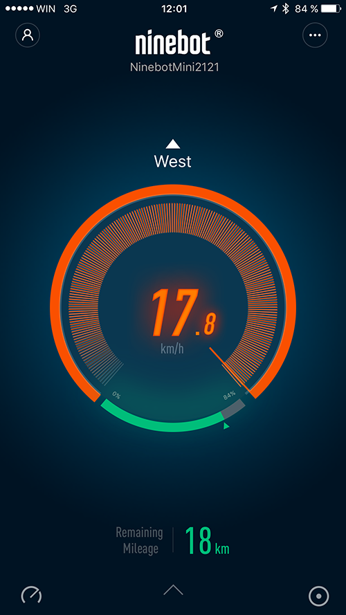 Сегодня наездил около 20 км, к палке привык окончательно, все нравится, ездил с товарищем, он на велосипеде, а я на мини, почти все время на максимуме, пытался сделать скриншот на максимальной скорости, но не успевал, было 18.2, заснять смог вот так: