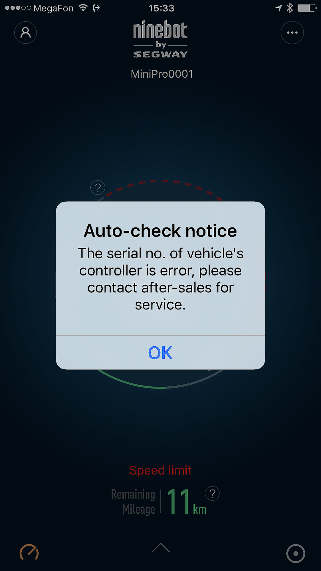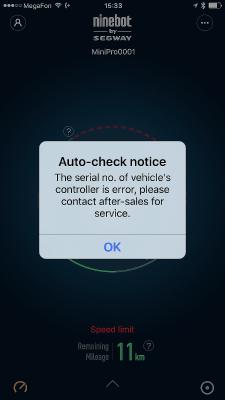 Все случилось на версии Про бай Сигвей, пробег на новой прошивке был уже более 30 км (вчера/сегодня). Акк был на 80%, после остановки достаточно плавный разгон, под горку, ближе к 18 км/ч предупредительный писк и резкое отклонение назад....