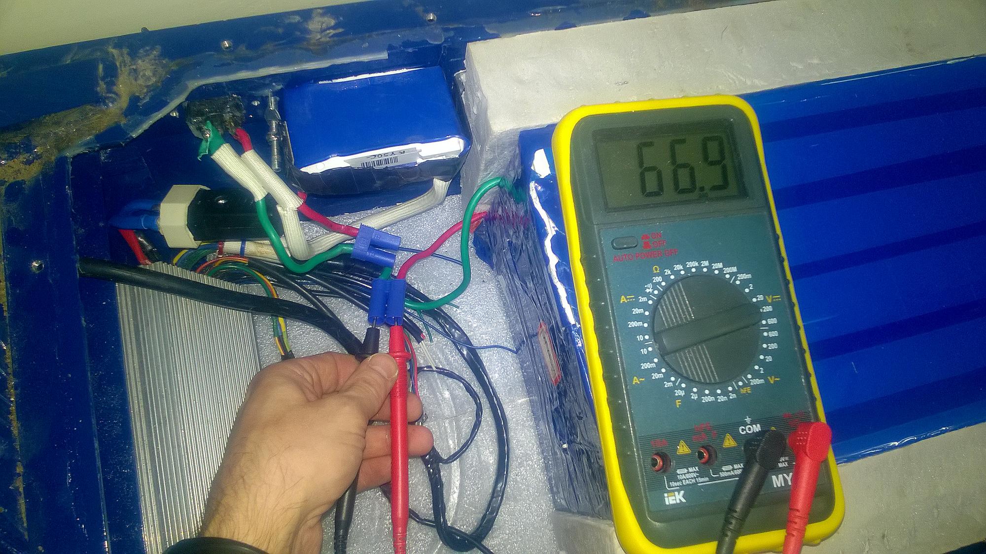 Полностью зарядил, вольтметр показывает 68.3в не знаю почему не 72. Скорее всего бмс делает такую отсечку.