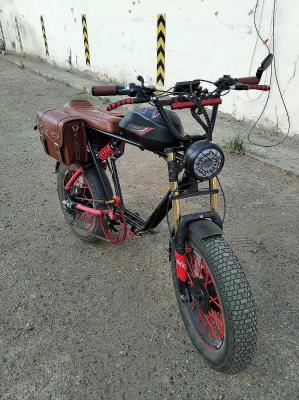 Бензогенератор, типа Patriot i1000 в раму этого байка ещё не встраивал, но планирую этим заняться зимой.