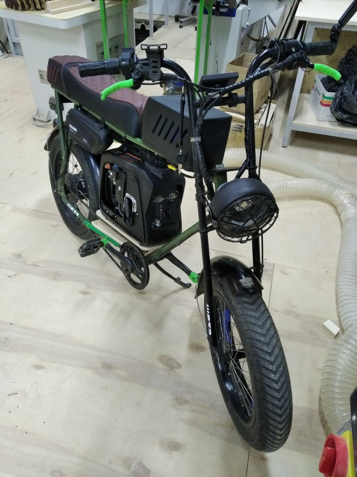 Неделю назад перенёс батарейку с внутрянки рамы на место бензобака, центр тяжести сместился в верх, но пока не критично...  Катаю, тестирую. Буду ещё наводить марафет на баке, покрою его жидкой резиной.