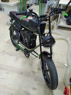 Амортизации нет, Ваша правда. Я сначала по этому поводу и сам переживал, вроде как это существенный минус и вел из-за этого казался каким то недоделанным и он действительно прыгал как мячик... Но прошло время, я заменил покрышки на менее прыгучие, (профиль пониже 1/4.)  Приспособился к нему, вспомнил и начал применять некоторые техники - скилы из кросс-эндуро и он у меня перестал прыгать и его теперь не крестит в отскоках...  Ну когда садишься в первый раз на эндурик, то тоже получаешь массу проблем, и подвеска в зад пнёт и всбрыкнуть может. Но к этому же привыкаешь, учишься, приспосабливаешься.  Вот и я приспособился и уже не хочу на этом веле подвеску.  Вилка у меня, сама по себе мякгая, руки не забивает. Я планирую этой зимой собрать ещё один вел типа Супер 73 на другой раме, с маятником, активной вилкой, но этот вел мне уже нравится таким, каков он есть. Видимо я к нему просто приспособился)... И мне нравится, что без лишних наворотов он лёгкий, минимум обслуживания.  Движок у меня сейчас мхsus на 750W 48V  но я форсировал его батареей на 60V, 1,5 кВт. в пике, 0,9-1,2 на марше.  Для моего веса 50 кг, этого вполне хватает для разгона 51 км. в час... Редукторник крутить выше наверное уже не целесообразно, он итак у меня гудит как троллейбус). Хотя хотелось бы прибавить ещё 10 км. в час.  Вот такую раму хочу на новый вел... Тем более запчастей от 48V осталась туча)_