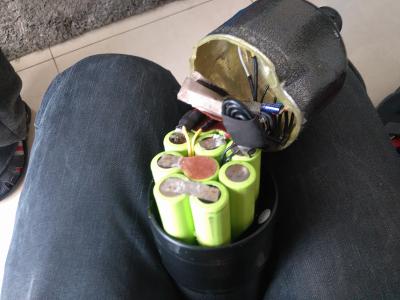 Поскольку я прямо на покупку приехал со своей батарейкой 36в 12а мы с продавцом разобрали бутылочку родного акамулятора