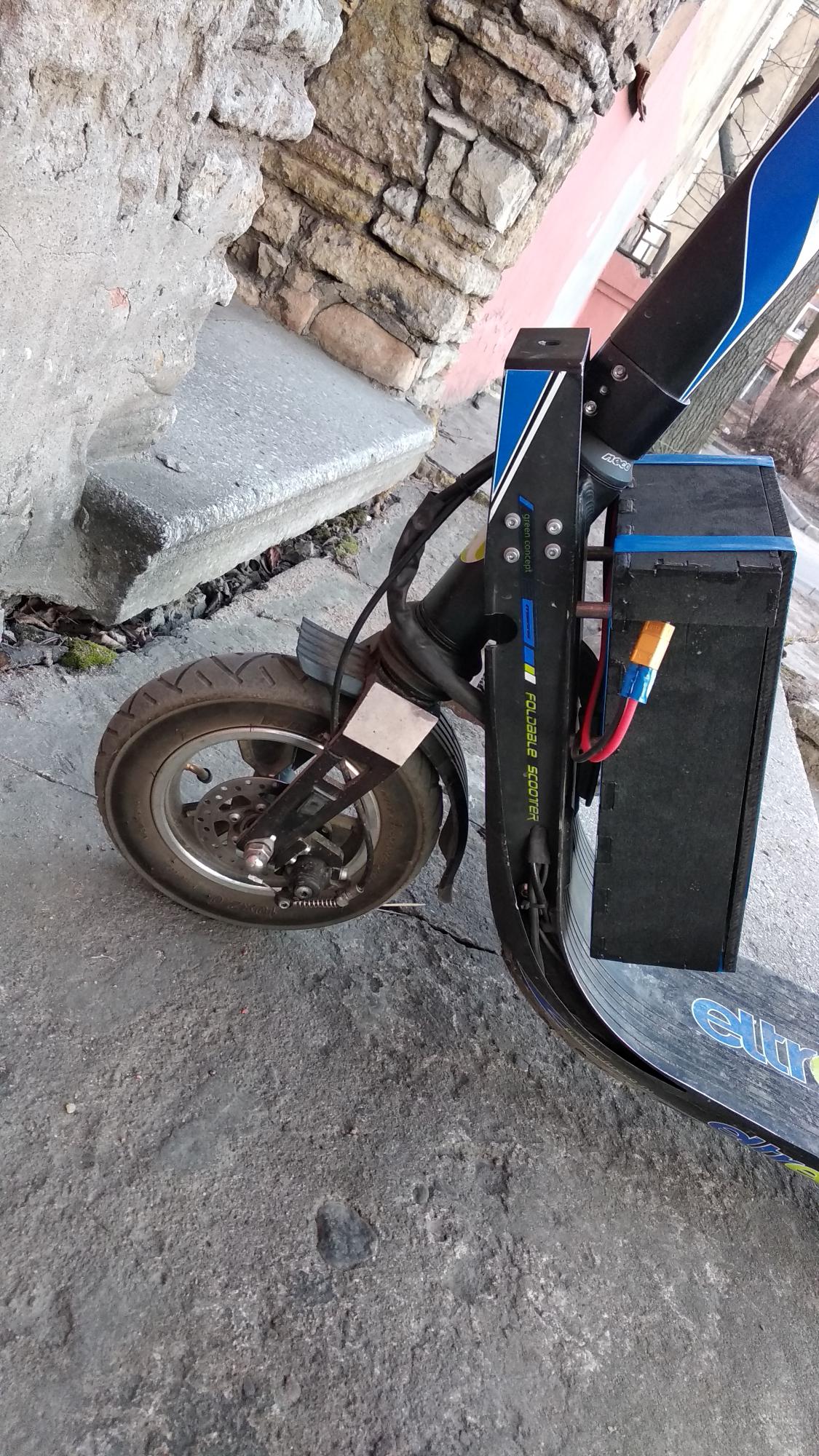 Вот я и приколхозил батку от бустера на наш коник .Ёмкость около 17 А/ч. Пробный пробег в 12 км и все пять палок на месте .Заряжал зарядкой от коника почти 10 часов ). Думаю запас хода теперь километров на 60 .