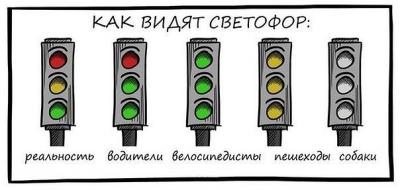 Дело-то в том, что все водилы ТС - коробочники, мотобайкеры, велопедники, пешедральники (в том числе и собаки) по разному таки (индивидуально - каждый для себя) различают светосигнальные предупреждения светофоров.