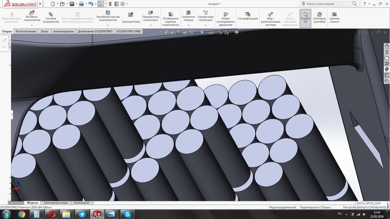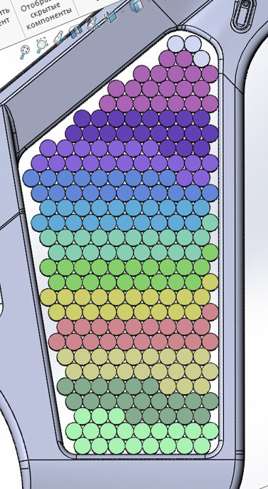 Поясню почему. Сборка батареи делается последовательным соединением паралленых сборок. В предложенном варианте соединение наиболее просто реализуется с равномерным сечением соединительных проводников (лент)