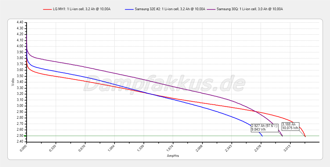 Тут как бы на лицо факт: при нагрузке 10А 30Q отдает меньше всего на 0.250втч, но и просаживается намного меньше MJ1...