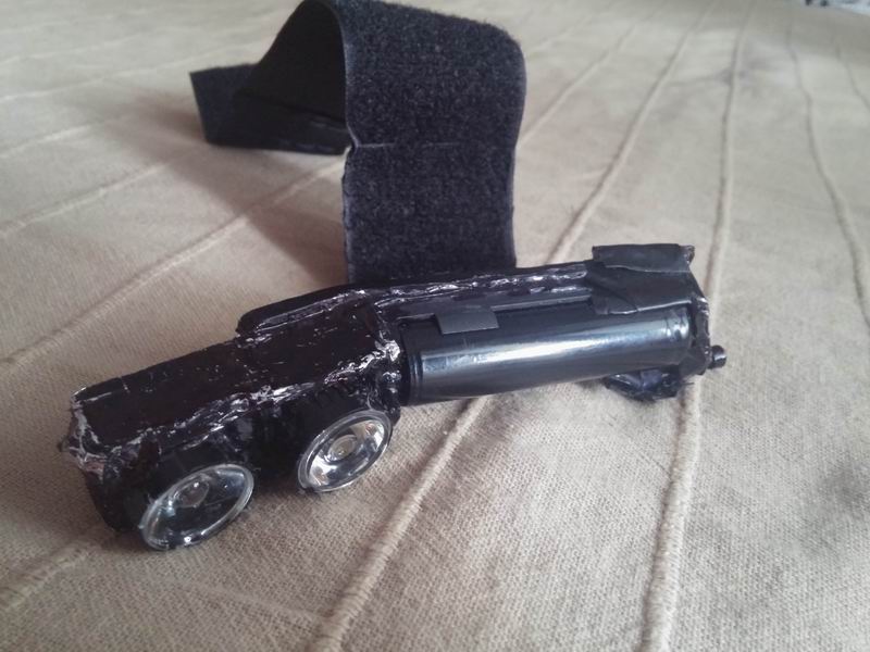 В итоге сделал свой, специально для самоката: нижняя линза широкая, освещает примерно на два метра в стороны (для поворотов).  Верхняя светит метра на 4-5 узким лучом, высвечивая тенями ямы и бордюры.  Размещается низко с помощью липучки вокруг рулевой стойки, чтоб не слепить прохожих. Опционально можно использовать на лямке рюкзака или руке как тактический )))).