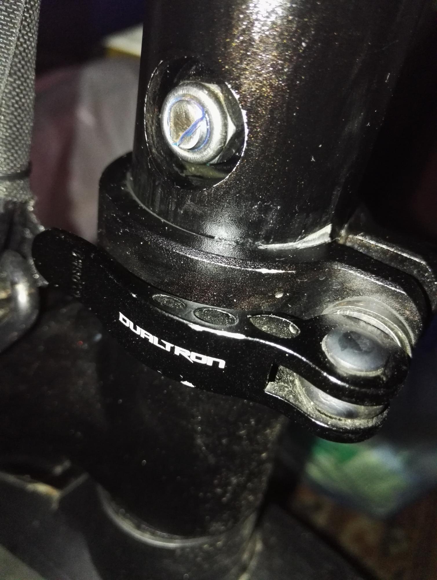 Складной механизм. Трется походу об трубу зажим. Когда попадает WD в виде смазки все пропадает. На сухую скрипит и трещит.