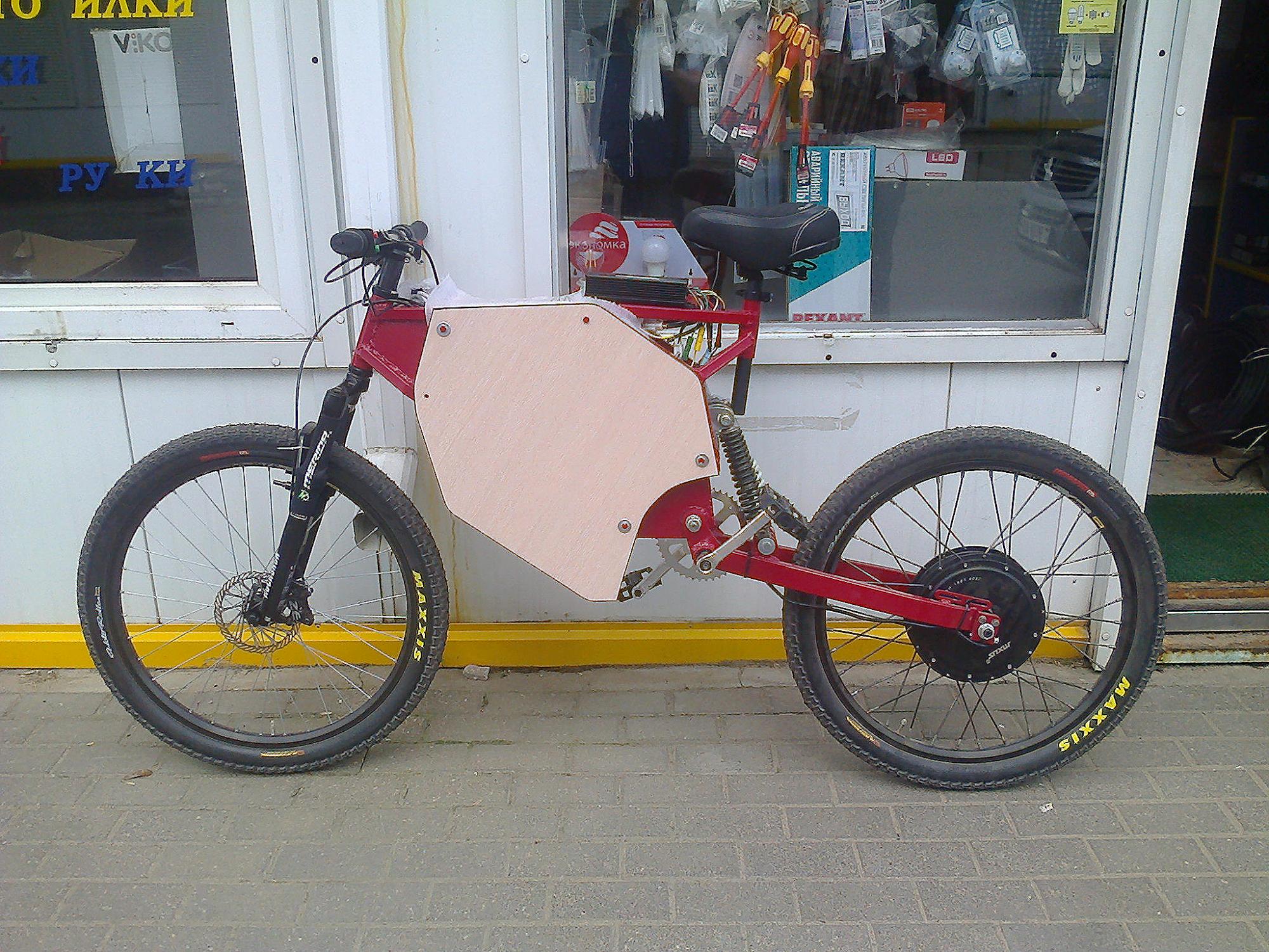 Электро-рига7. задний к-т мхус 750вт + 14s Li-po 10А*ч = 51км/ч по гпс. Расход 2кВт*ч/100км Бюджет 16000р (2012г)